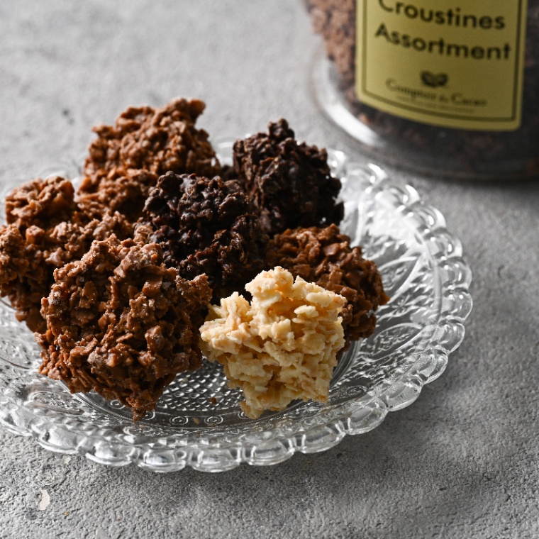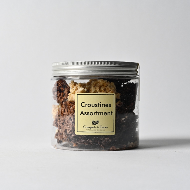 コントワール・デュ・カカオの中でも人気の高い、サクサクの繊細な薄焼きクレープとチョコレートを絡めたクルスティンチョコレートだけをかわいいクリアボトルに詰め込みました。