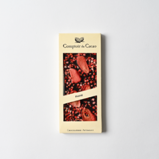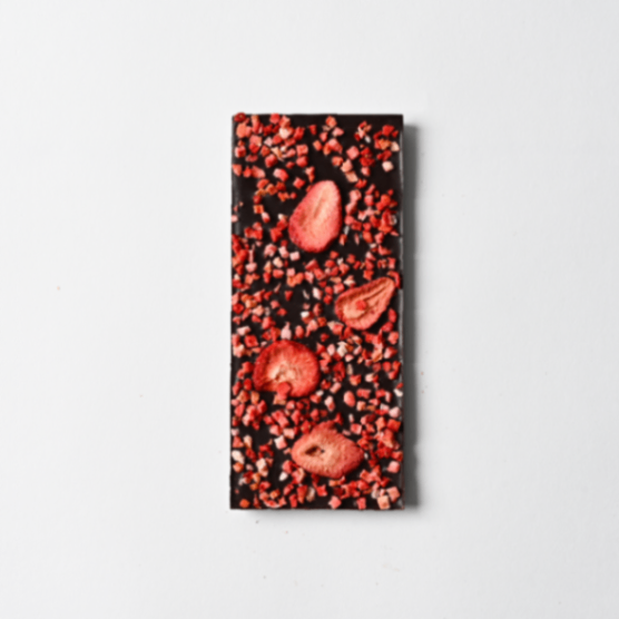 甘酸っぱいサクサクのフリーズドライストロベリー入りのダークチョコレートです。